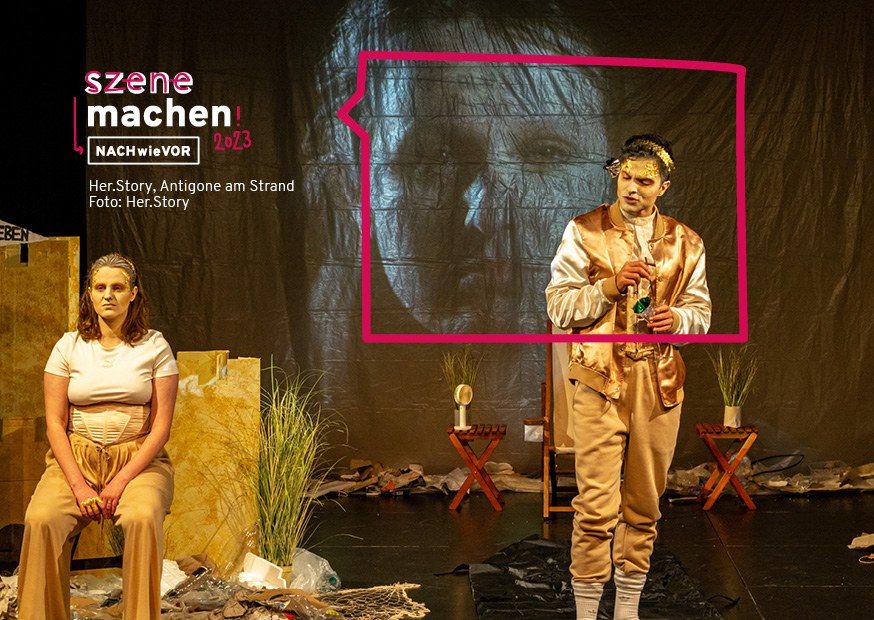 Sei es am Mittelmeer oder an den europäischen Grenzen – es werden Milliarden investiert, um die Außengrenzen Europas zu “schützen”. Dabei sterben etliche Menschen, die versuchen die Grenzen zu passieren und an ein sicheres Ziel zu gelangen. Der Herrscher Kreon möchte von den Toten nichts wissen, denn sie sind nicht "unsere". Ihm steht die protestierende Antigone entgegen, die sich für diejenigen einsetzt, die nicht mehr leben. Macht, Verantwortung, Ignoranz, Gesetz, Moral, Solidarität… bei ihrem Disput stoßen wiederstrebende Kräfte aufeinander, die nicht auf einen Nenner kommen. Und zwischen Antigone und Kreon steht der Chor, der mitverhandelt, agiert, zur Disposition stellt und den Fragen nachgeht: Wem gehören die Toten? Wem gehört die Welt? Wie viel Verantwortung kommt jedem Einzelnen zu? Was passiert, wenn wir handeln oder nicht handeln? Und wenn wir handeln, wie kann ein gesellschaftlicher Neuentwurf aussehen? Für die Eröffnung von szene machen! 2023 wird das Stück "Antigone am Strand" als performative Lesung präsentiert.